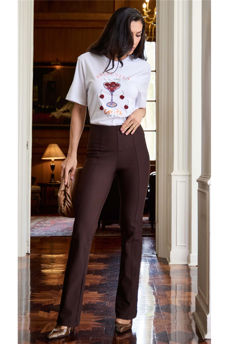 Calça chapa barriga confeccionada em tecido malha de alta qualidade, proporcionando toque macio, elasticidade e excelente caimento. A modelagem chapa barriga oferece ajuste que valoriza a silhueta, enquanto a cintura média garante conforto e praticidade. Além disso, conta com detalhes: recorte lateral no cós e a nervura no meio da perna frente.