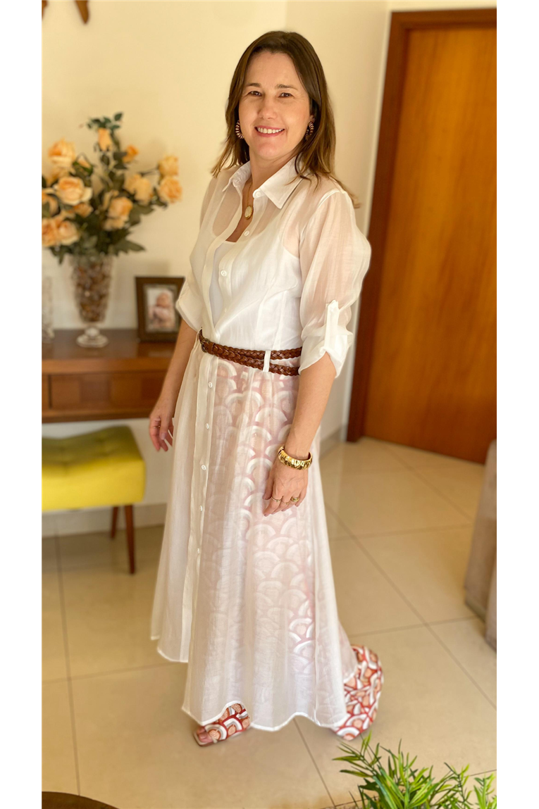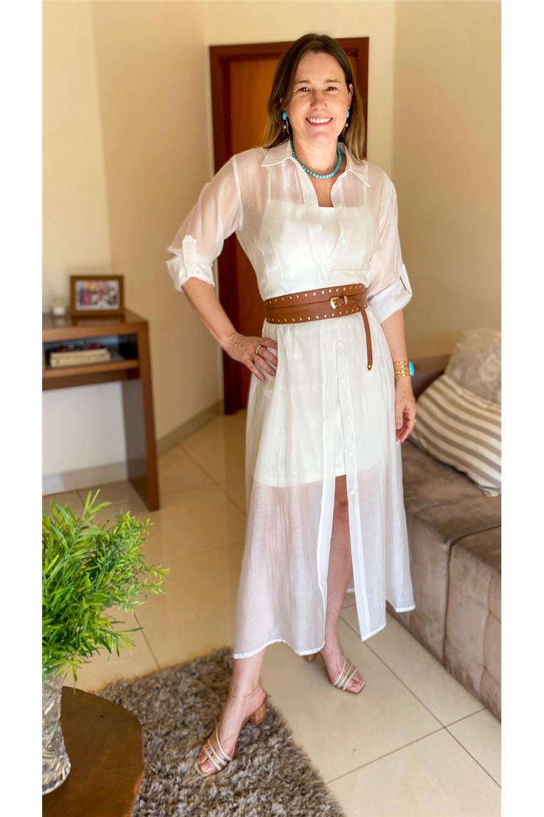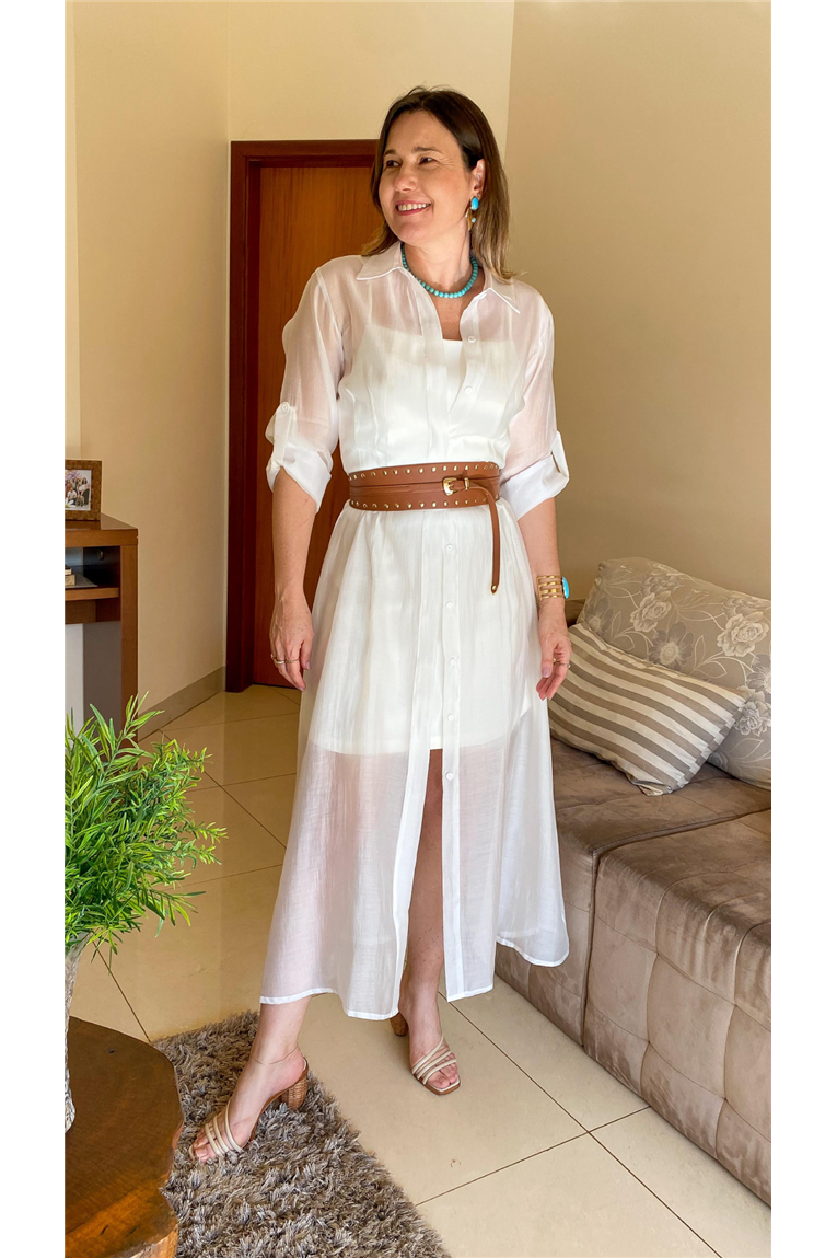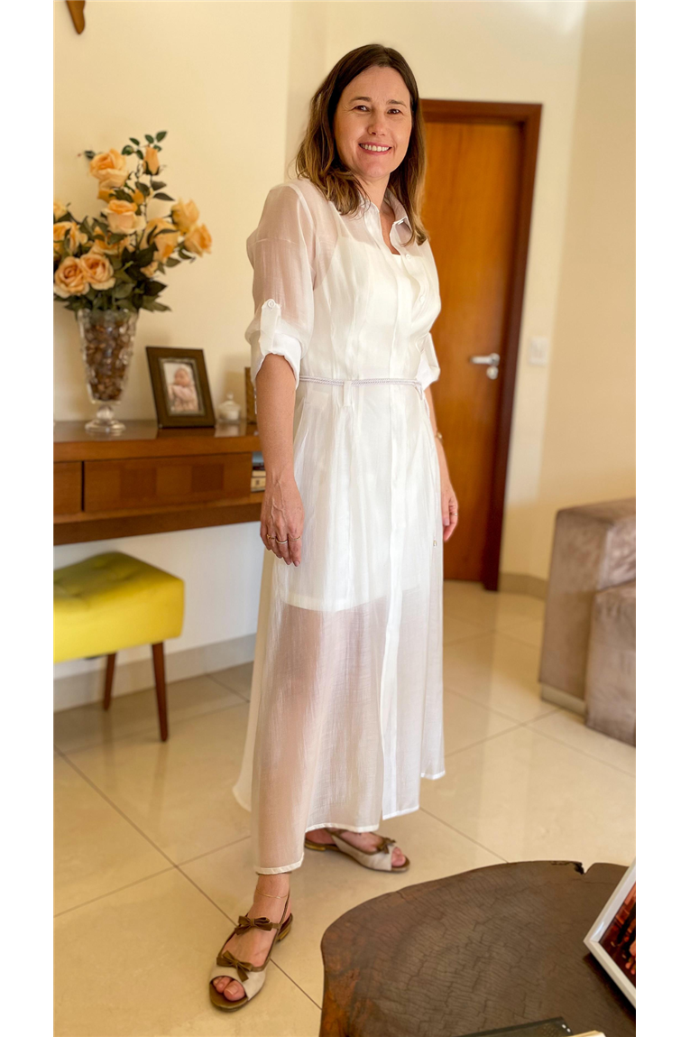 Vestido chemise, manga pode usada como 7/8, possui forro.O forro pode ser usado como um vestido tubinho curto.